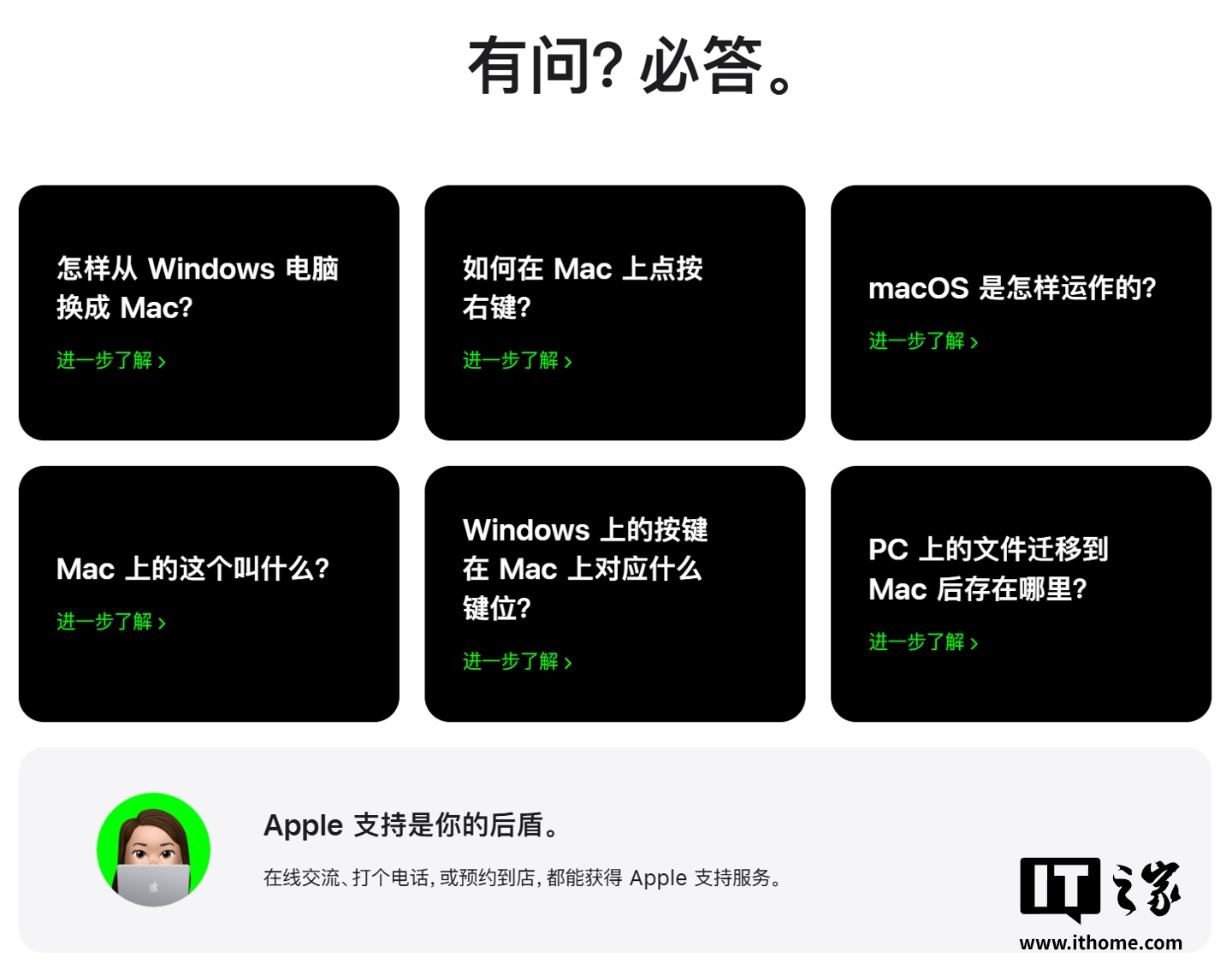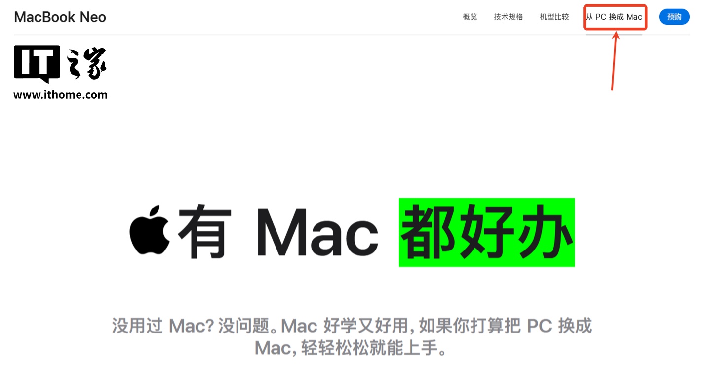 此外 Windows 11 系统目前正因过度植入 AI 和系统稳定性问题遭遇口碑危机,苹果敏锐捕捉到这一时机,在官网显著位置增设了“从 PC 转至 Mac”专属引导页,试图向未接触过 macOS 的用户灌输“迁移无缝且体验更佳”的观念。