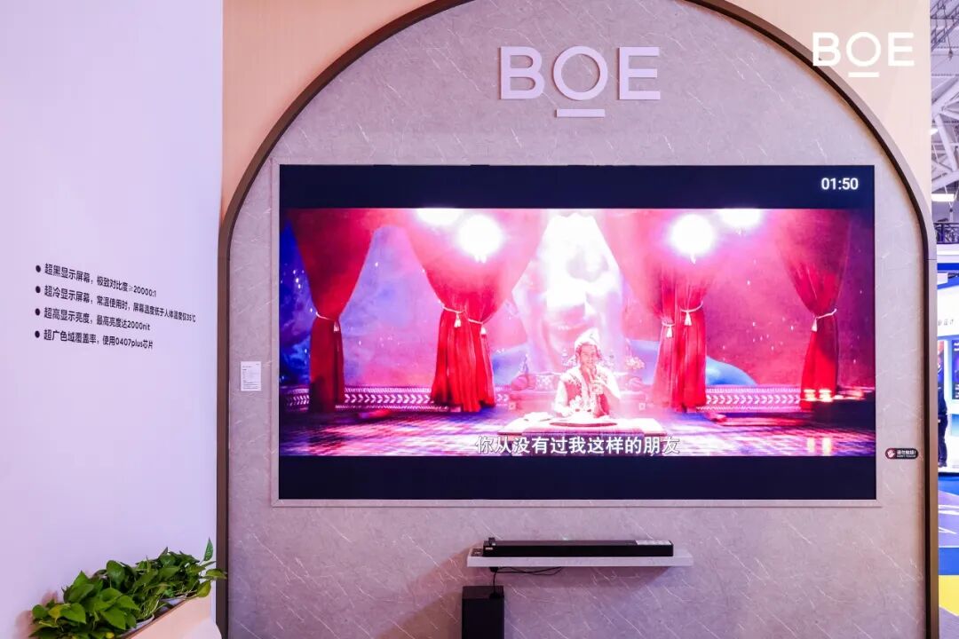 此款MicroLED家庭影院采用了首次展出的205寸COG方案。AM驱动模式,屏幕低闪烁,护眼更健康;LTPS驱动+GIA设计实现无缝拼接设计;创新模组化拼接结构形态;自研画质增强IP,更高画质表现。