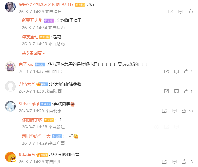 至于超大屏 Air 手机,目前还没有具体信息。作为参考,去年 11 月上市的华为 Mate 70 Air 售价 4199 元起,配备 7 英寸高刷 OLED 屏,厚度仅 6.6mm 是史上最薄 Mate,搭载麒麟 9020A / B 处理器。