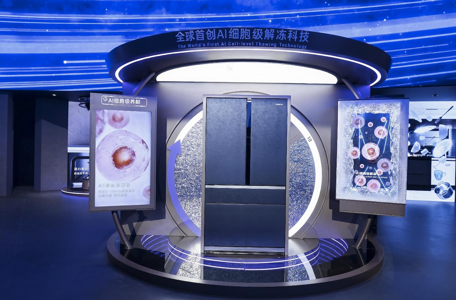 在海尔展馆的冰箱展台,雷科技还看到了拥有「AI细胞级解冻技术」的卡萨帝指挥家冰箱。用户将冻肉放到解冻舱后,这款冰箱就会启动AI遥感系统,精准识别200余种食材并匹配最佳解冻方案,仅需5到10分钟就能完成解冻。