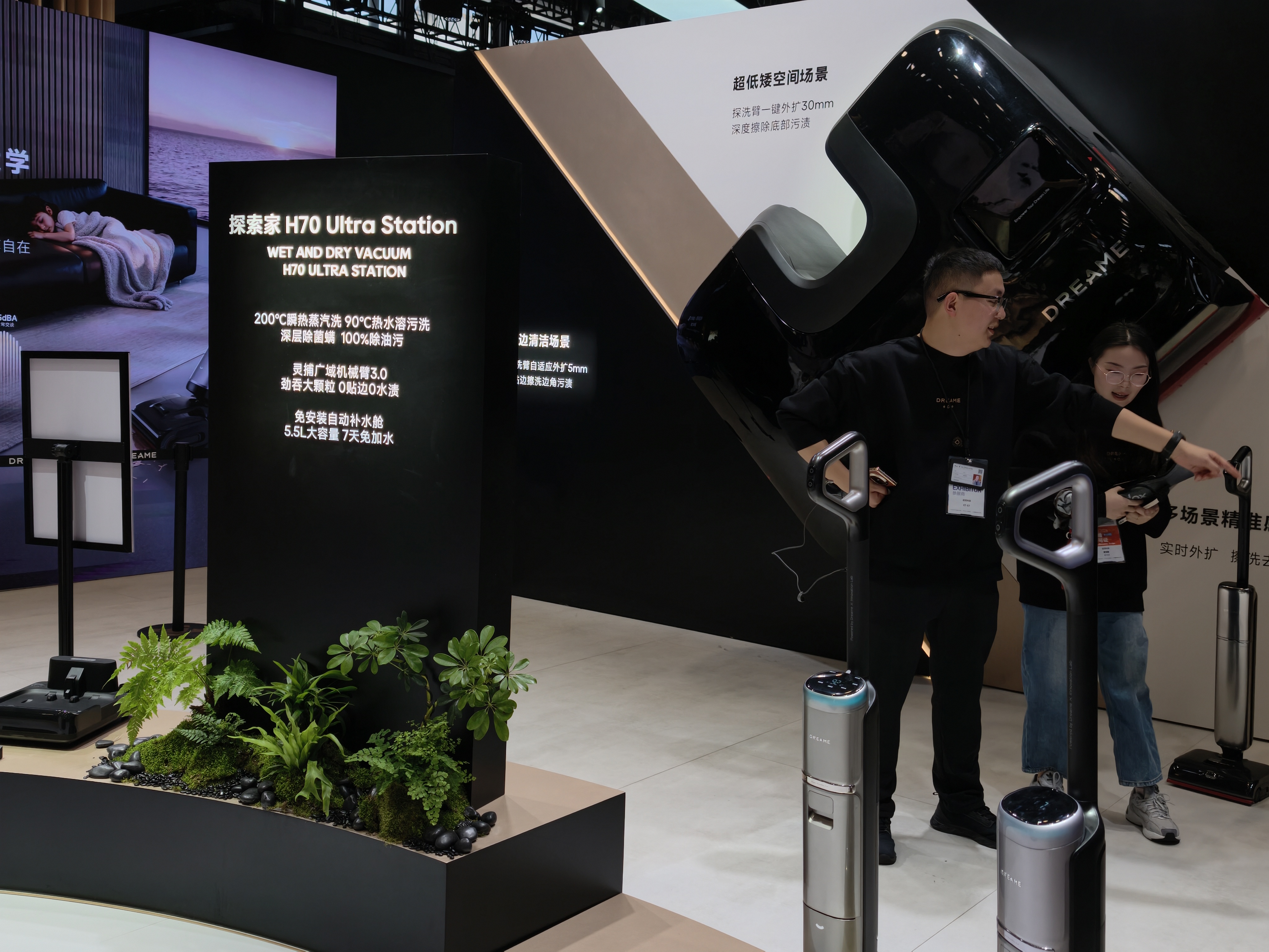 追觅和MOVA的洗地机,则在力拼「扫得净」。雷科技在追觅展馆看到,凭借新一代机械臂技术,追觅T70系列可以更加轻松地清理大颗粒垃圾,清洁面积也得到进一步扩大。得益于伸展距离冲到16cm的仿生拖布机械臂,MOVA V70 Ultra不仅能覆盖常规的直角墙边,还能在弧形桌腿、不规则家具边缘实现物理层面的紧密贴合,死角覆盖率达到上一代外扩产品的3倍。