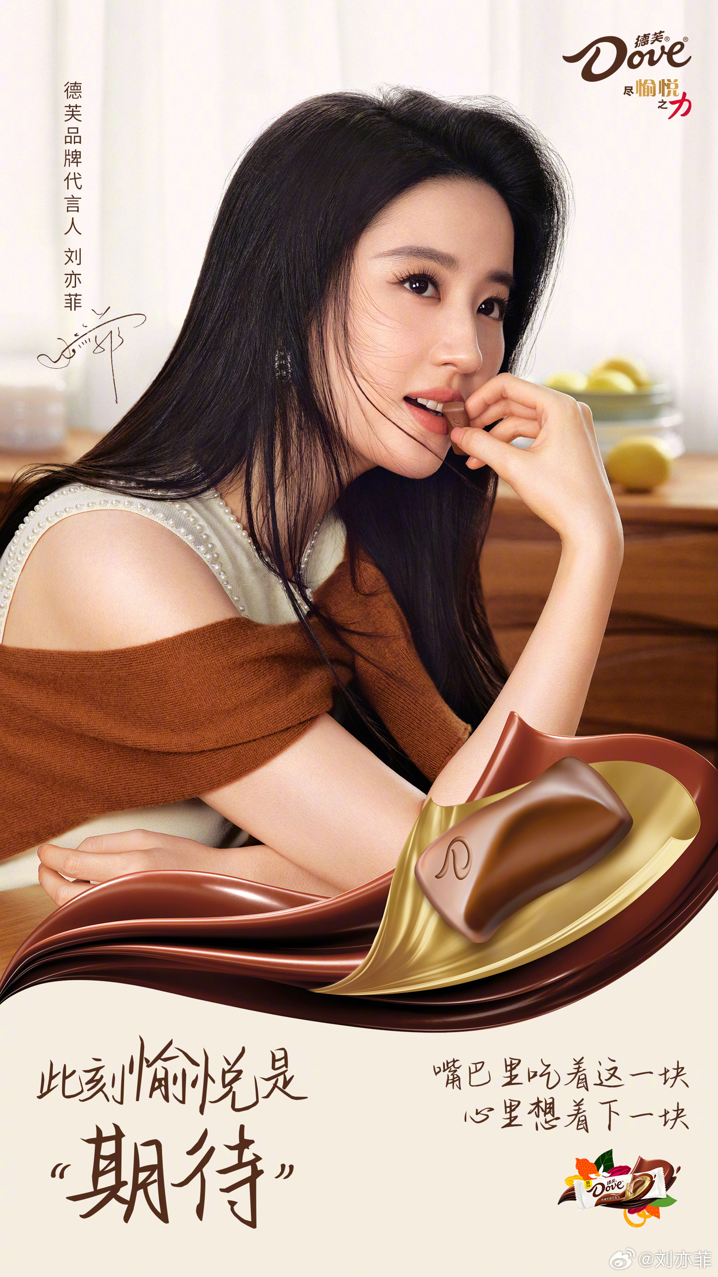 就在昨日,刘亦菲宣布成为德芙品牌代言人,因此也放出了多张代言海报。