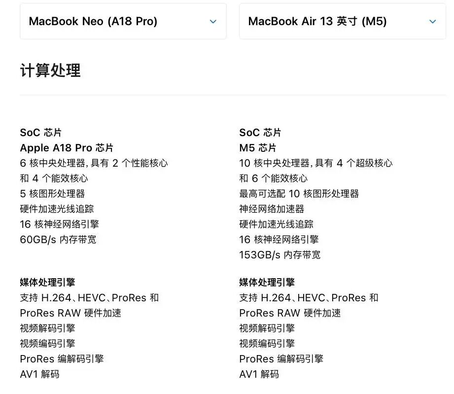 从参数表上看,iPad Air M4 的性能似乎对 MacBook Neo 构成了碾压之势。