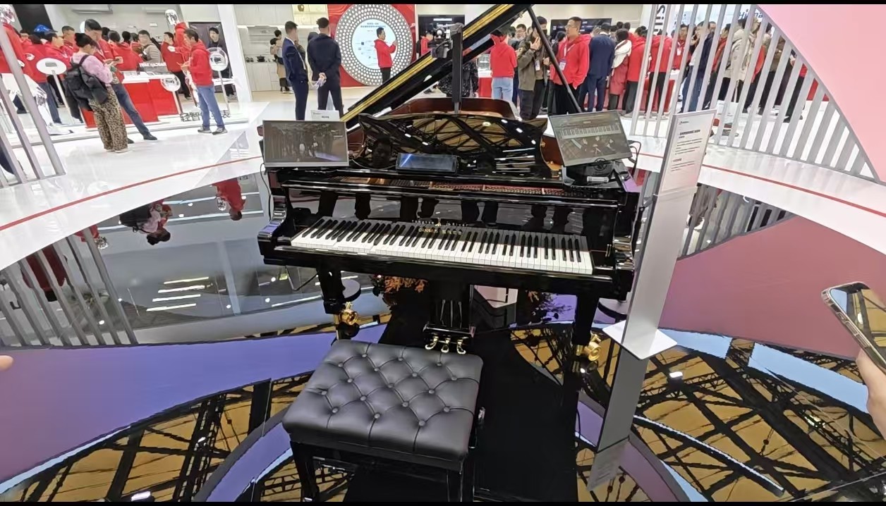 这套设备可以用于家庭教学,也能在餐厅、酒店等场所中,营造空间氛围。工作人员特别提到,团队做过大量盲测,机器与真人的弹奏差异,已经很难分辨。“它甚至可以根据上传的谱子即时演奏。”