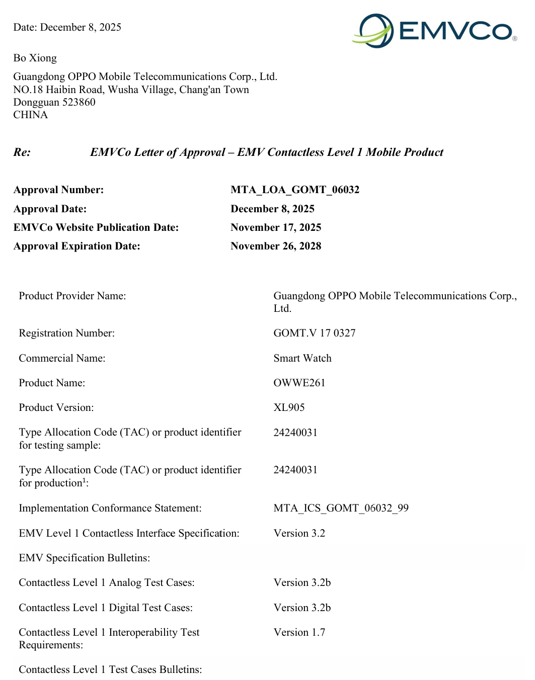 IT之家 3 月 20 日消息,据科技媒体 GSMArena 今天报道,一加 Watch 4 手表目前现身 EMVCo 认证数据库。