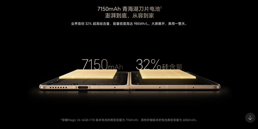 比如,3月10日发布的荣耀Magic V6,售价8999元-11999元,大内存版涨价1000元。虽然号称“折叠屏大满贯”,但荣耀Magic V6的影像硬件配置几乎没有提升,仅16GB+1TB顶配版搭载7150mAh电池、支持北斗卫星短信。