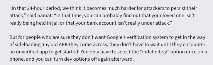 说白了,这一招就是在物理层面给 侧载 诈骗踩刹车。虽然这确实会恶心到你,但谷歌希望通过这个方式降低流氓软件和诈骗软件的危害 ——