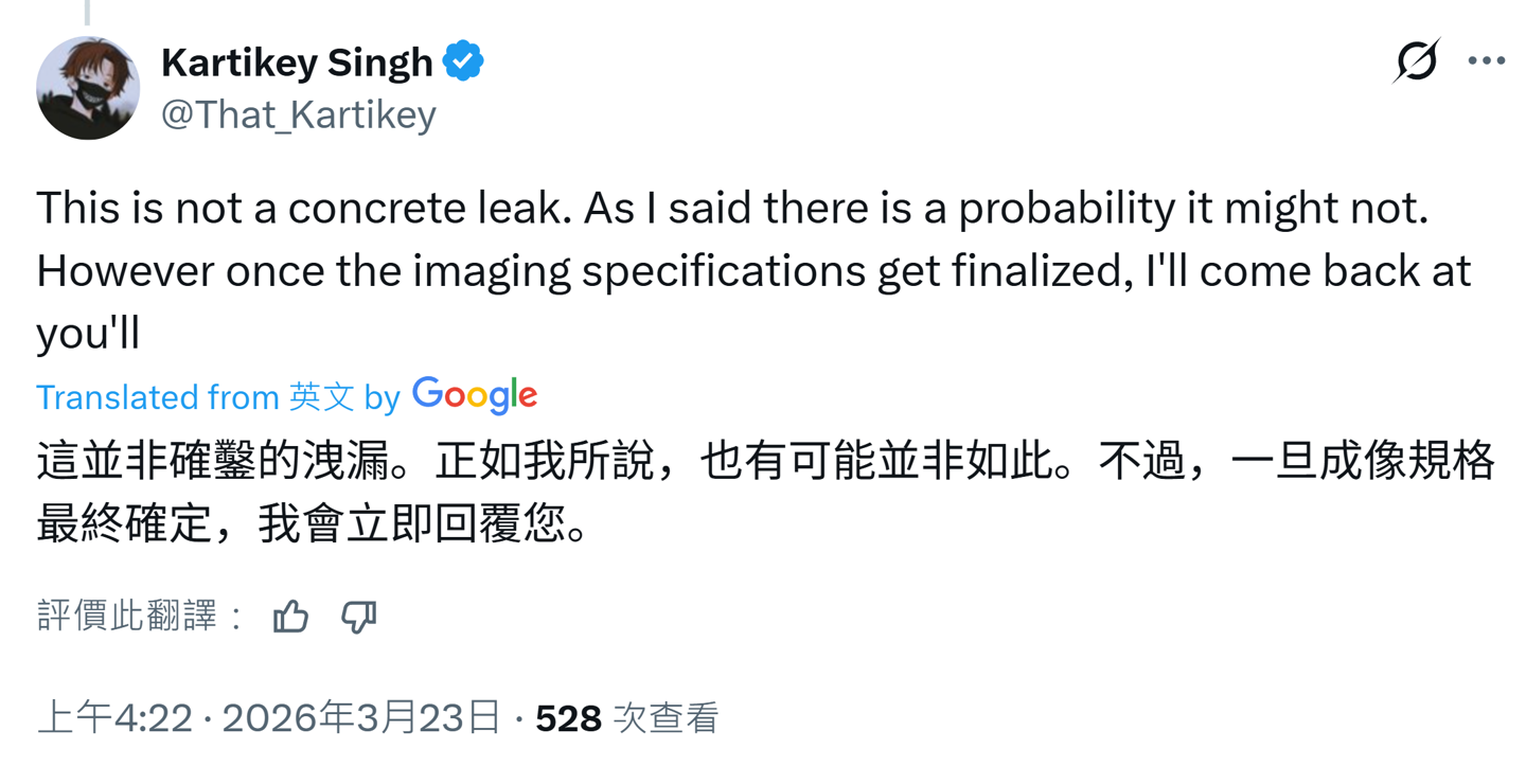 该消息人士还在后续表示,小米 18 Ultra 有可能不会继续使用 1 英寸 CMOS 传感器,不过目前产品规格尚未敲定,因此仍有变数。