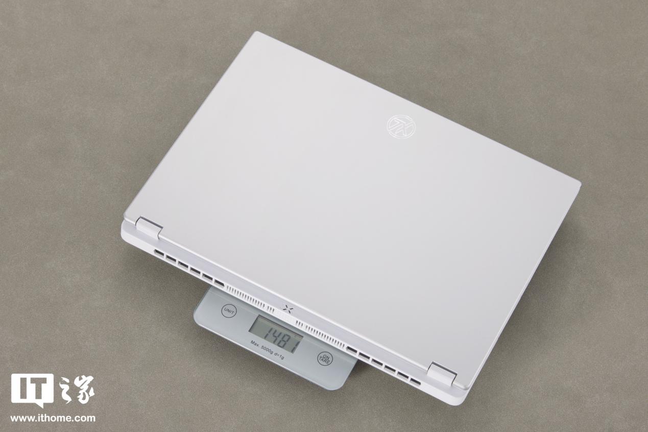 同时IT之家测得天选 Air 2026 机身厚度为 1.67cm(官方数据为 1.69cm),重量则只有 1.48kg(官方数据也为 1.48kg),对于一款 14 英寸的高性能笔记本来说确实是非常轻便了,日常移动办公带着它也没什么负担。