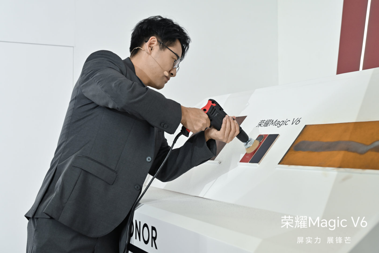 今年MWC和荣耀Magic V6国内发布会上,无论是具身机器人现场演示后空翻、太空步等高难度动作,机器人手机Robot Phone具身交互神化,眼神追随、点头互动、音乐律动……用“生命感”替代冰冷参数,到电钻磨屏、引体向上承重、冰冻防水、高空滑索等可视化挑战,荣耀开始以一种非常直观接地气的方式,将技术的领先型和实际使用场景结合展示。