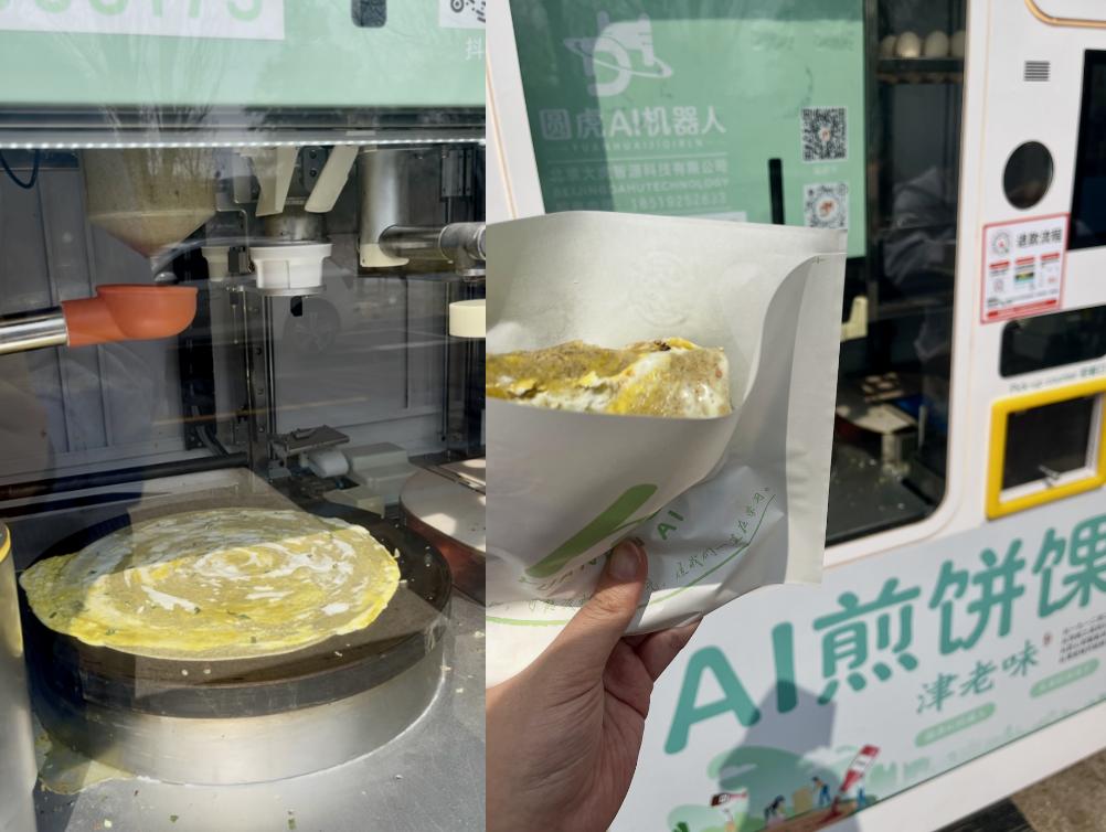 在亦庄早上出门,为了积极响应爸妈“记得吃早饭”的催促,你可以请机器人为你摊个煎饼。