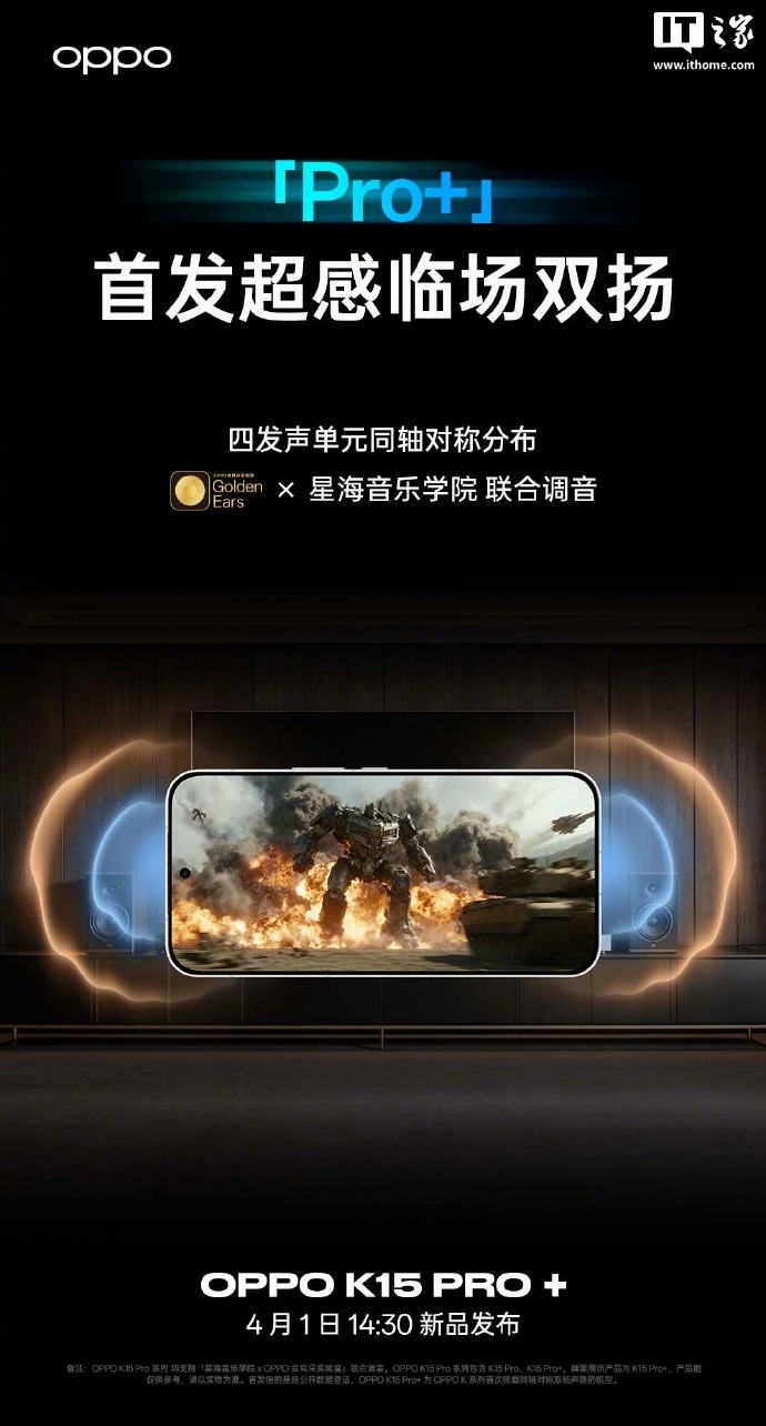 IT之家 3 月 31 日消息,OPPO 官方今天在微博发文,公布 K15 Pro+ 手机的详细参数。
