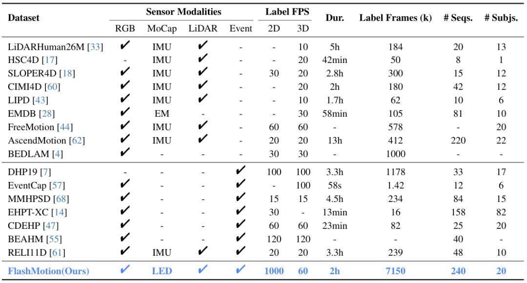 表1:FlashMotion数据集与现有数据集对比
