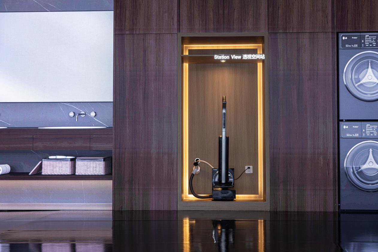 就拿AWE上展示的空间站系列新产品芙万Station View来说,添可在研发这款产品之前,团队做了件“笨”事——深入走访了数千名用户。他们发现,用户对基站洗地机的两大顾虑:一是看不见效果,担心基站内部及管道堵塞;二是安装太麻烦,怕改造上下水。