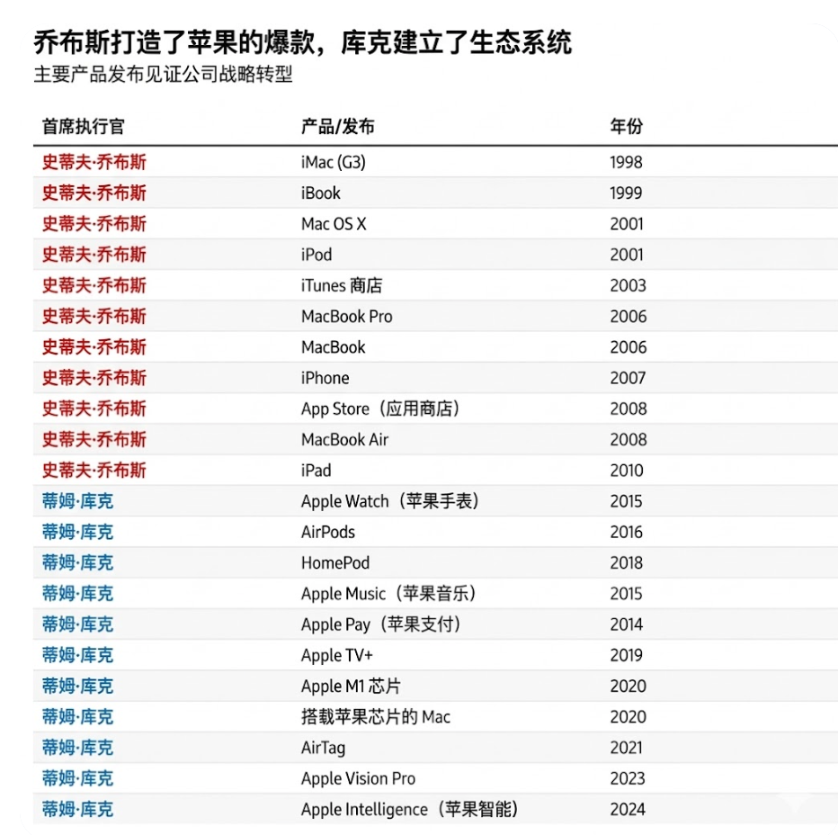 乔布斯、库克领导下的产品