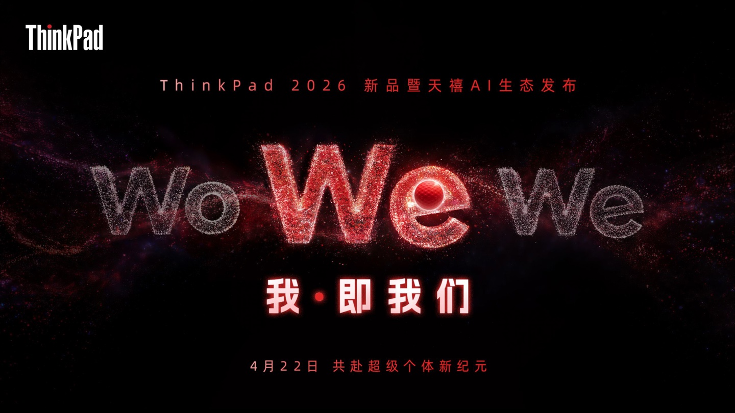 IT之家 4 月 7 日消息,联想 ThinkPad 官方社交媒体平台账户今日确认,ThinkPad 2026 新品暨天禧 AI 生态发布活动将于 4 月 22 日举行,宣传口号为“我 · 即我们”。