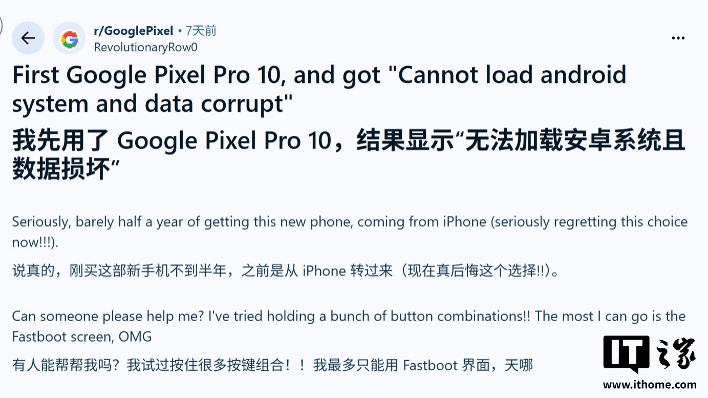 故障原因目前尚不明确。虽然 Google 已在官方问题追踪平台上确认收到反馈,并将问题移交工程团队,但未公布具体成因或修复时间表。部分用户尝试通过侧载固件修复,但未能解决问题。有用户反馈,即便手机能正常启动,更新后也出现了随机崩溃现象。