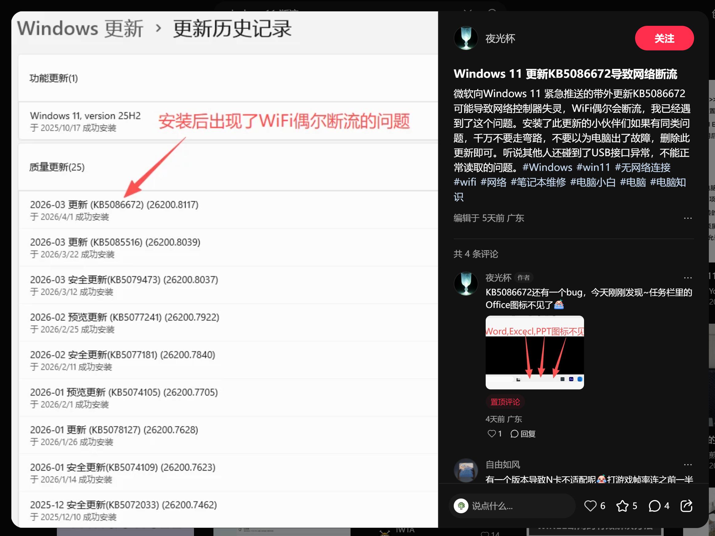 比如,微软在1月13日发布了例行安全更新,结果导致部分Windows 11电脑在执行关机或休眠指令时会自动重启;部分用户的电脑升级Windows 11 24h2后出现了触摸板失灵的情况;微软向Windows 11 紧急推送的更新KB5086672则导致部分用户网络控制器失灵、WiFi断流。