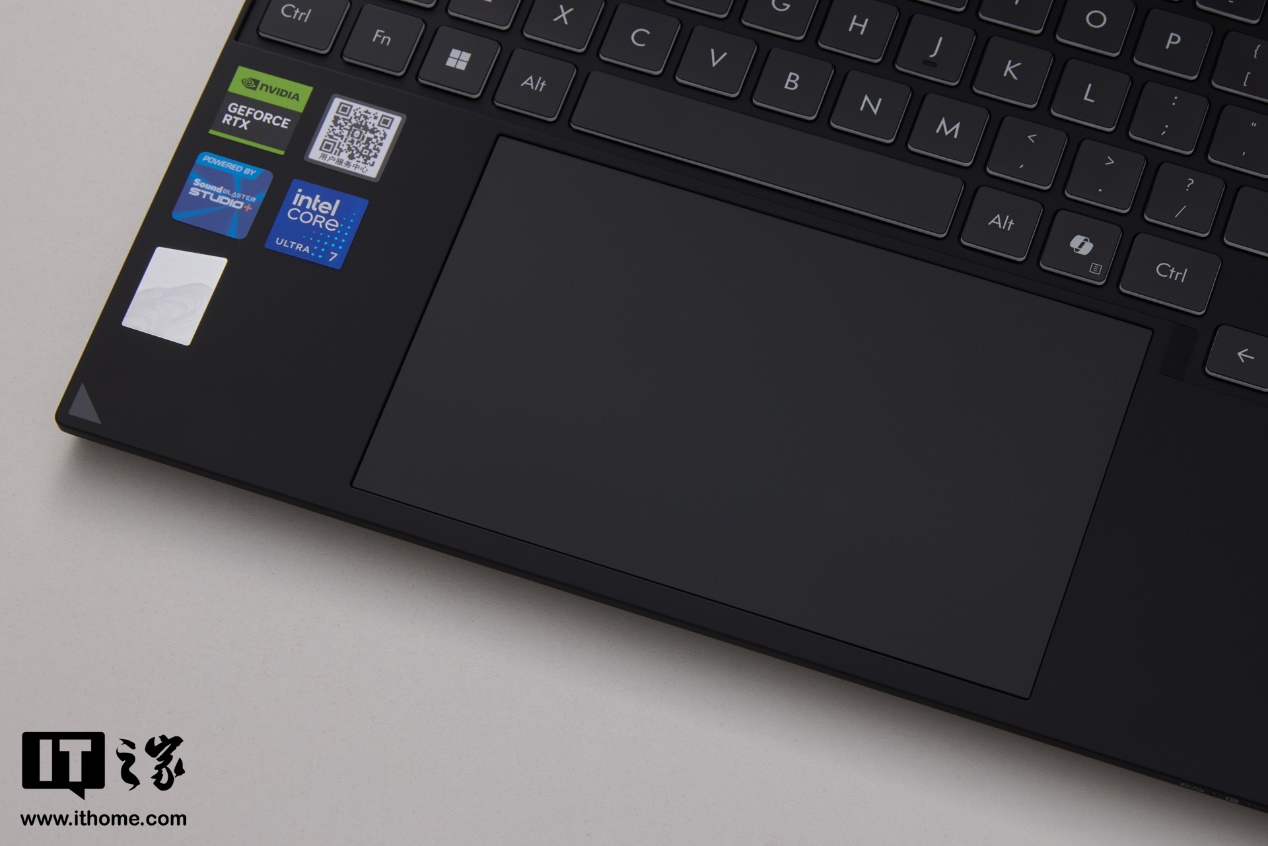 键盘下方为超大尺寸触控板,表面做了类玻璃工艺处理,手感光滑细腻,支持全域按压和多点触控。