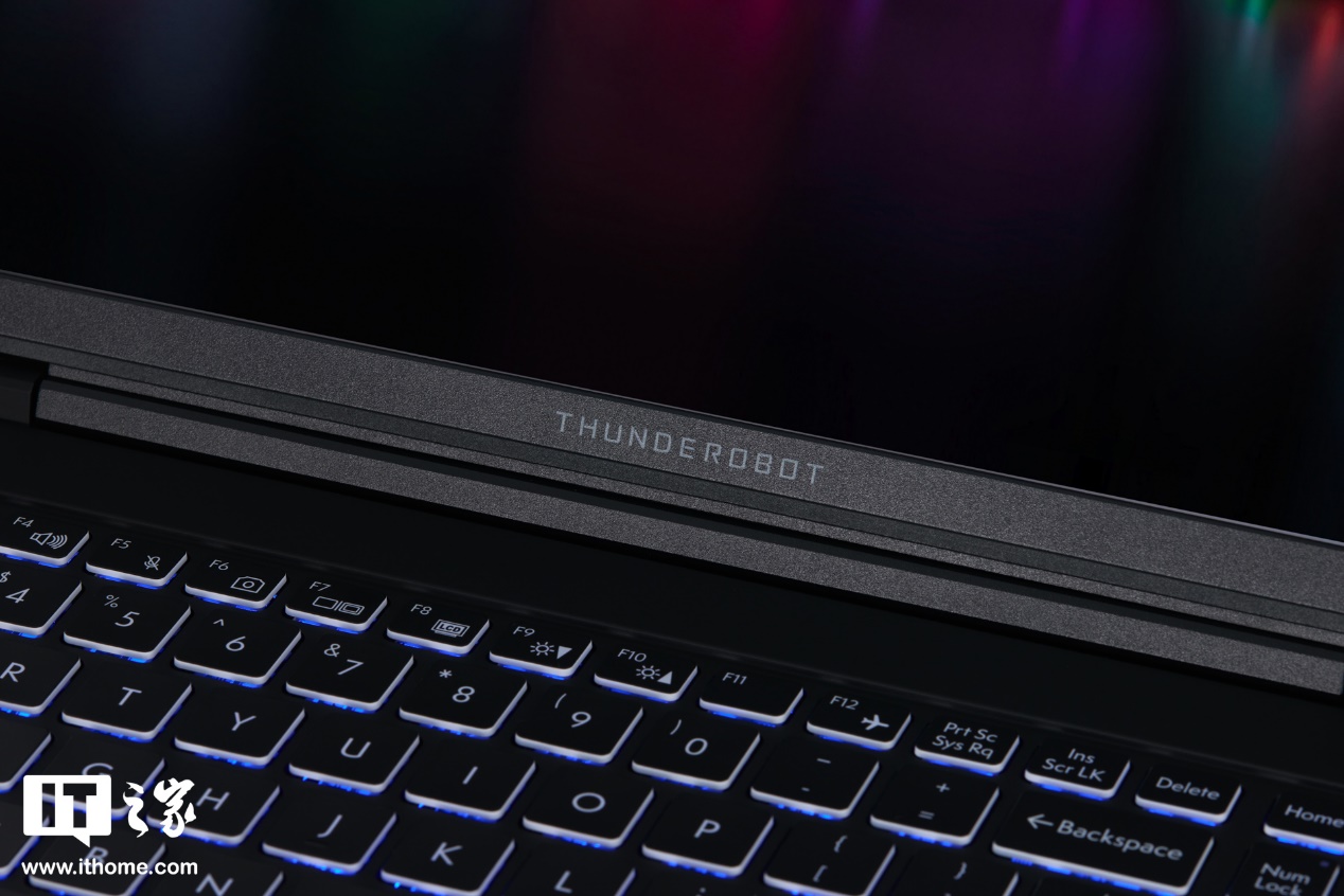 机身 A 面左上角有一个 ZERO 品牌标志,居中位置还有一个镜面雷神 Logo,转轴部分整体做了下沉设计,露出部分 C 面区域,视觉上更显轻薄。C 面露出部分还有一个雷神英文 Logo。
