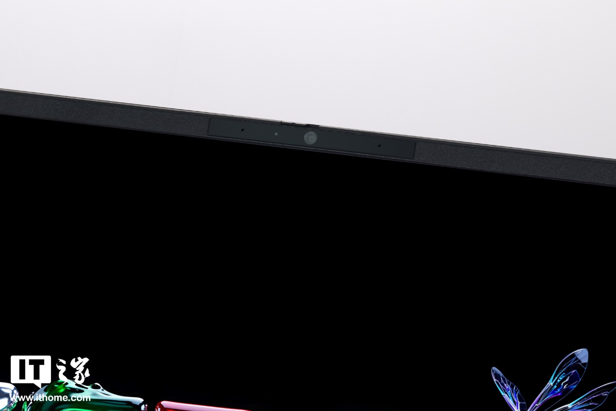屏幕上方做了独立摄像头模组区域,包括 FHD 摄像头、距离传感器和麦克风等,顶部还有独立开槽的物理遮罩开关,可保护用户隐私。