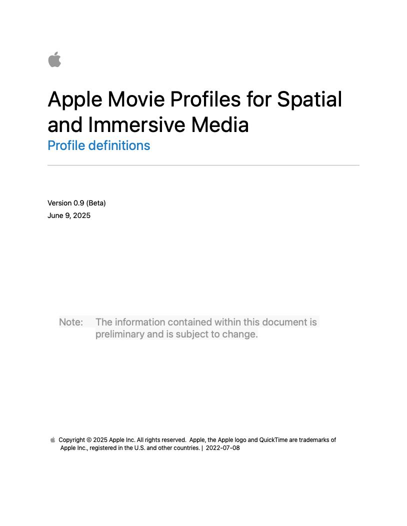 《Apple Movie Profiles for Spatial and Immersive Media》白皮书