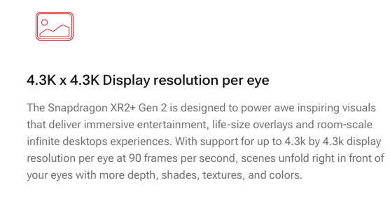 后来又更新了 XR2+ Gen2,但是算力不变,只是把支持的屏幕分辨率从单目 2K 提升到了单目 4K。