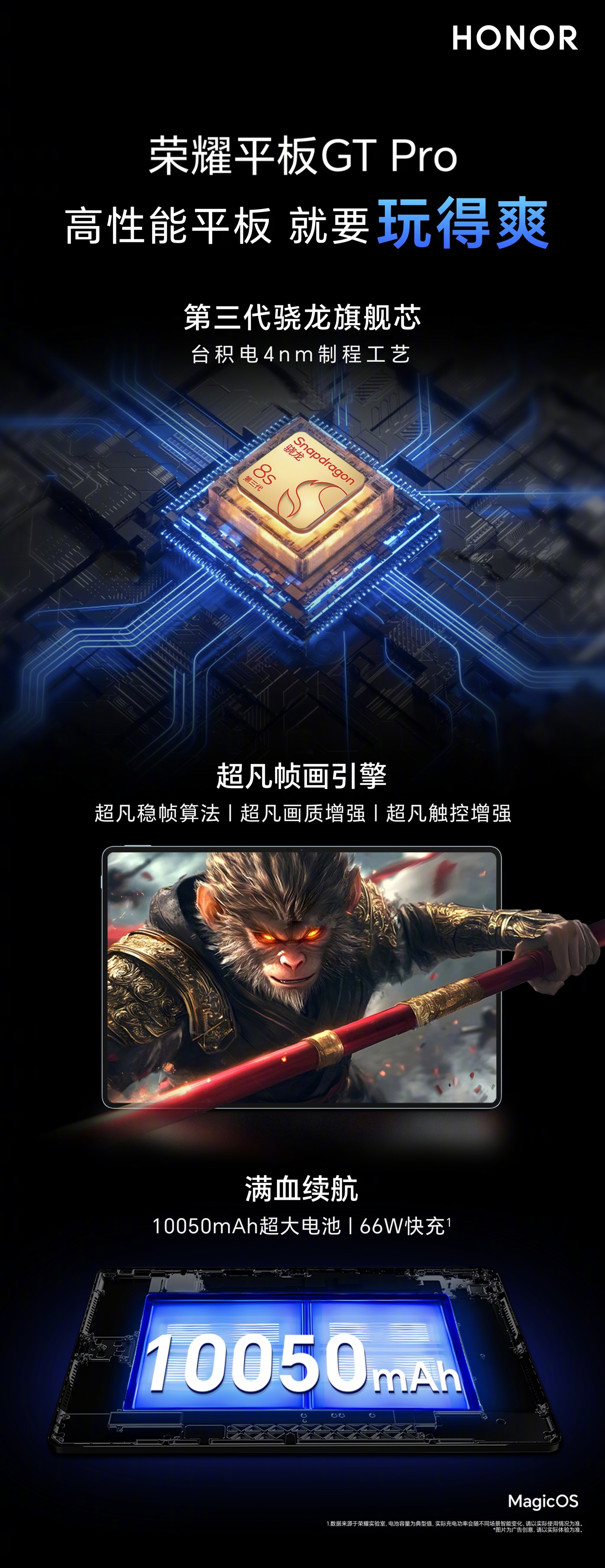 此外荣耀平板 GT Pro 搭载超凡帧画引擎,支持超凡稳帧算法、超凡画质增强、超凡触控增强。