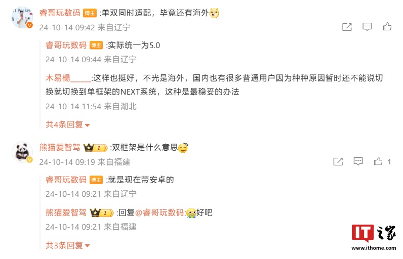 据其介绍,Mate 70 系列同时适配单 / 双框架(IT之家注:前者为“纯血鸿蒙”,后者为兼容安卓应用的鸿蒙),以兼顾海外市场。