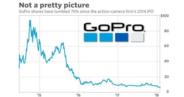 2014年,GoPro登陆纳斯达克值一度攀升至近130亿美元,甚至创始人被贴上“下一个乔布斯”的标签,但如今市值已跌至约1.2亿美元,着实有点太惨不忍睹。