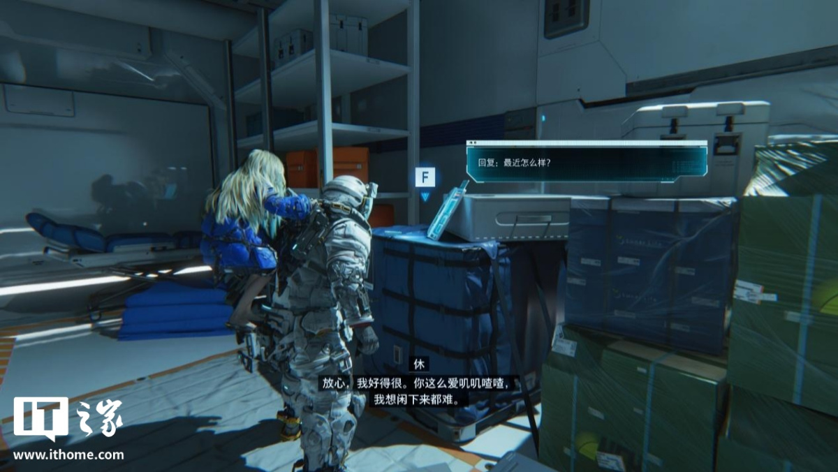 然后,戴安娜拥有很多人格化魅力,比如待机时趴在主角背上搞小动作,在空间站自顾自跑跑跳跳、到处张望,还会和主角聊天。