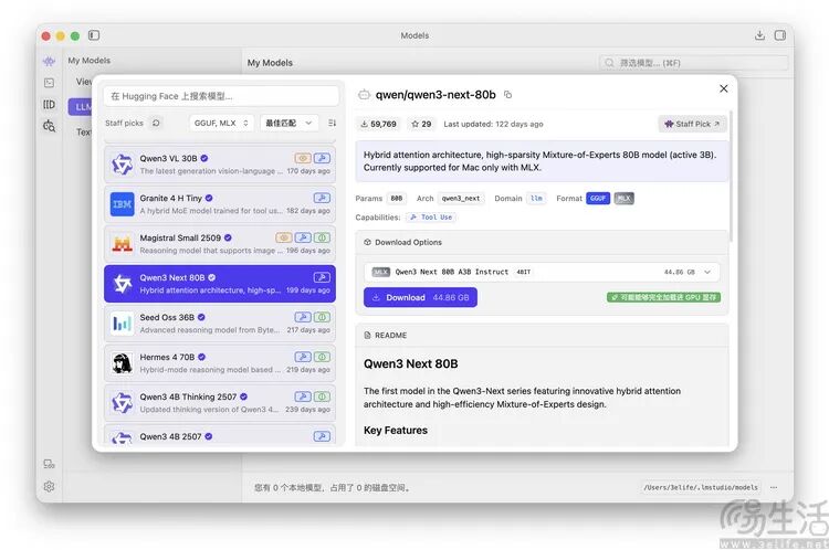 可以看到,这个80B模型“恰好”会吃掉近60GB内存