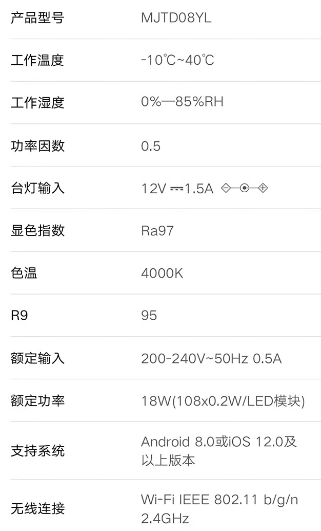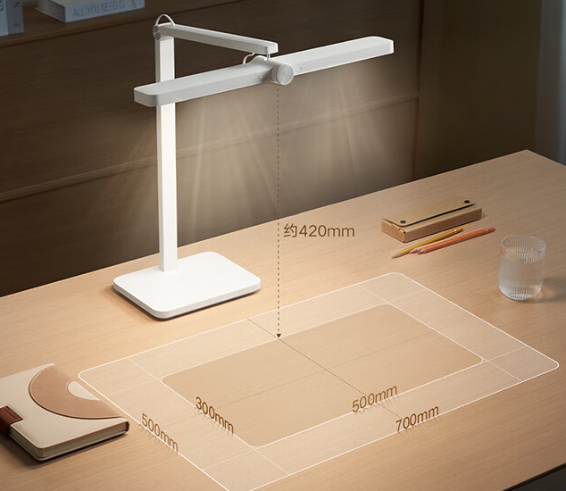商品页面显示,米家桌面学习灯搭载定制全光谱 LED 灯珠,色温 4000K、显色指数 Ra97,符合儿童青少年学习用品近视防控卫生认证要求。新品升级 DC 调光,无可视频闪,防蓝光危害等级 RG0 豁免级。