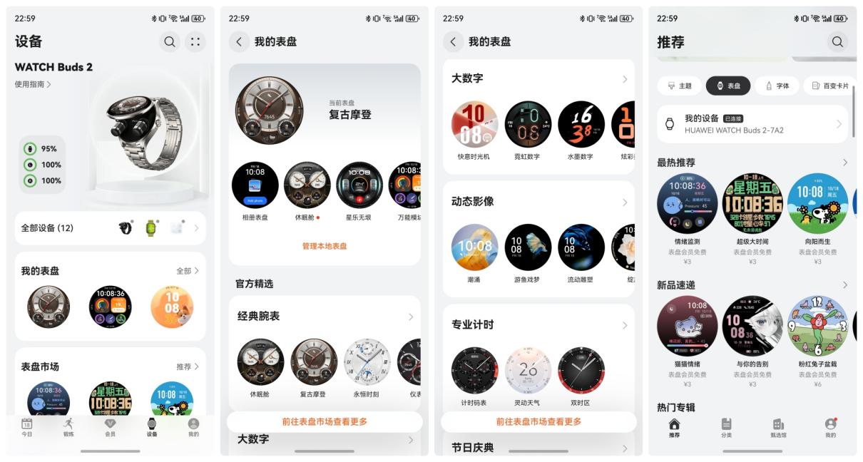 华为还为其定制了耳机专属表盘,双耳机的电量信息以多功能表盘组件的形式自然融入,查看起来清晰直观。
