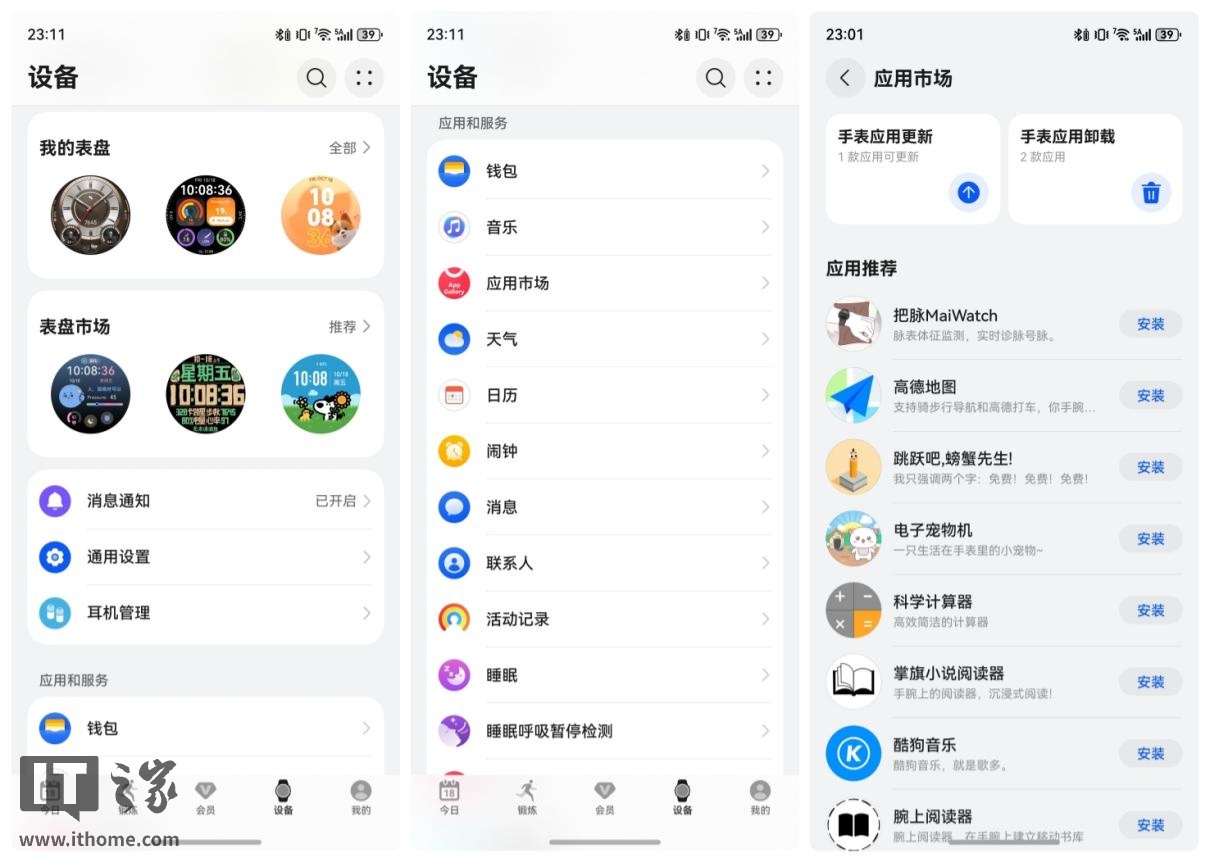 手表也内置了微信手表版(需保持与手机连接),满足了基础的腕上社交回复。