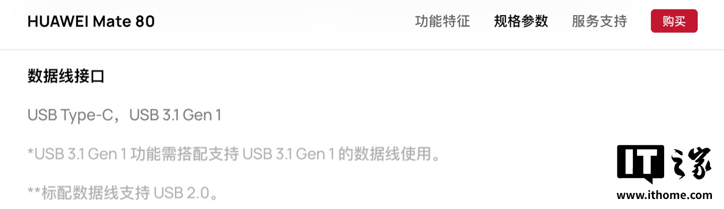 同时,目前官网在售的华为 Mate 80 全系手机“数据线接口”仍描述为“USB Type-C,USB 3.1 Gen 1”。