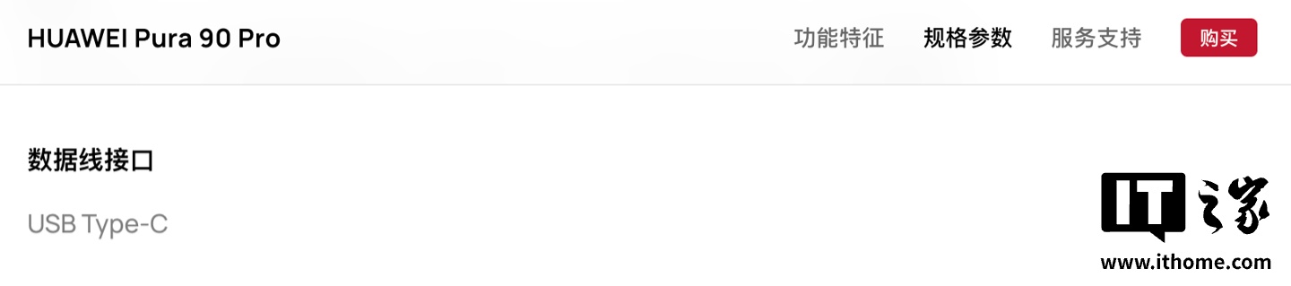 IT之家参考华为官网获悉,Pura 90 / Pro / Max 三款手机页面“数据线接口”描述为“USB Type-C”,有购买需求的IT之家小伙伴们需要注意。