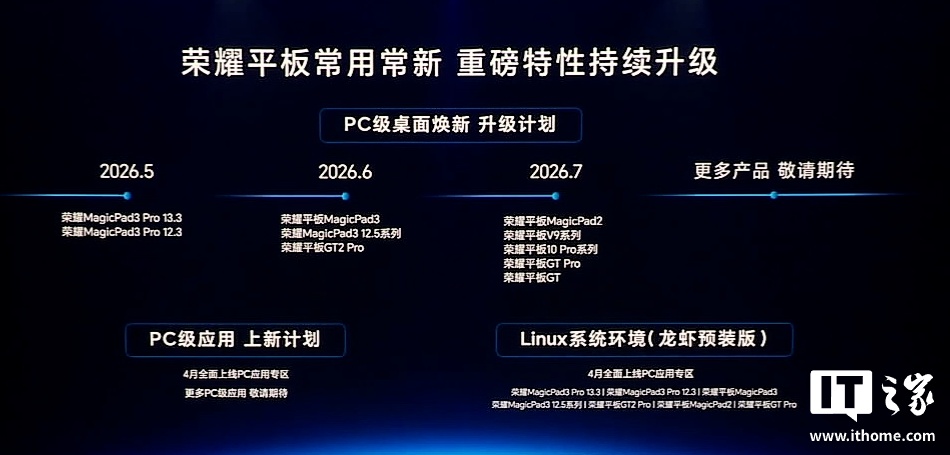 IT之家附荣耀平板 PC 级桌面焕新升级计划如下: