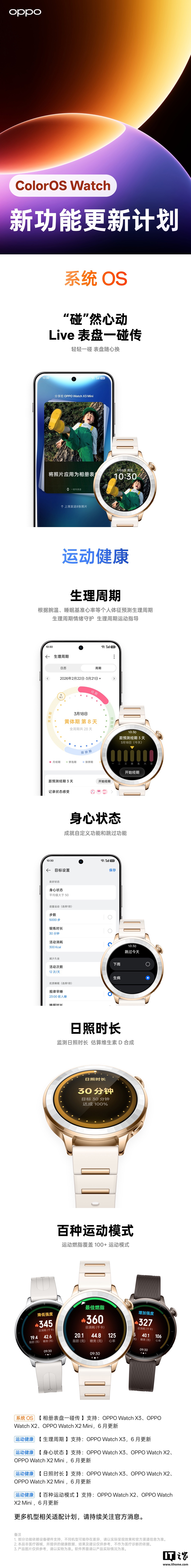 支持:OPPO Watch X3、OPPO Watch X2、OPPO Watch X2 Mini,6 月更新