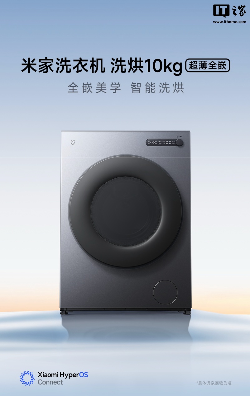 小米推出“米家洗衣机洗烘 10Kg 超薄全嵌”:1.25 洗净比、525mm 筒径,1599 元