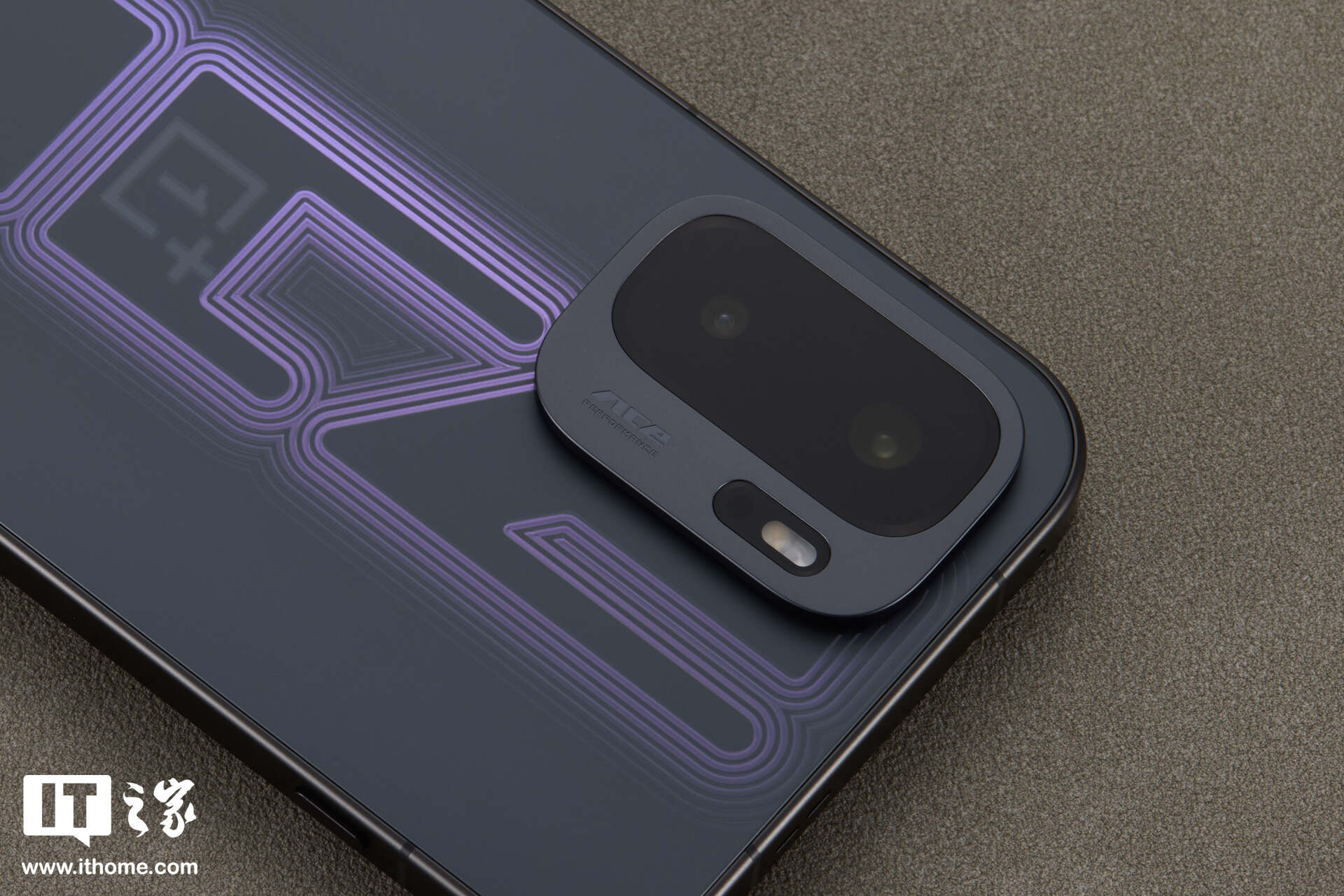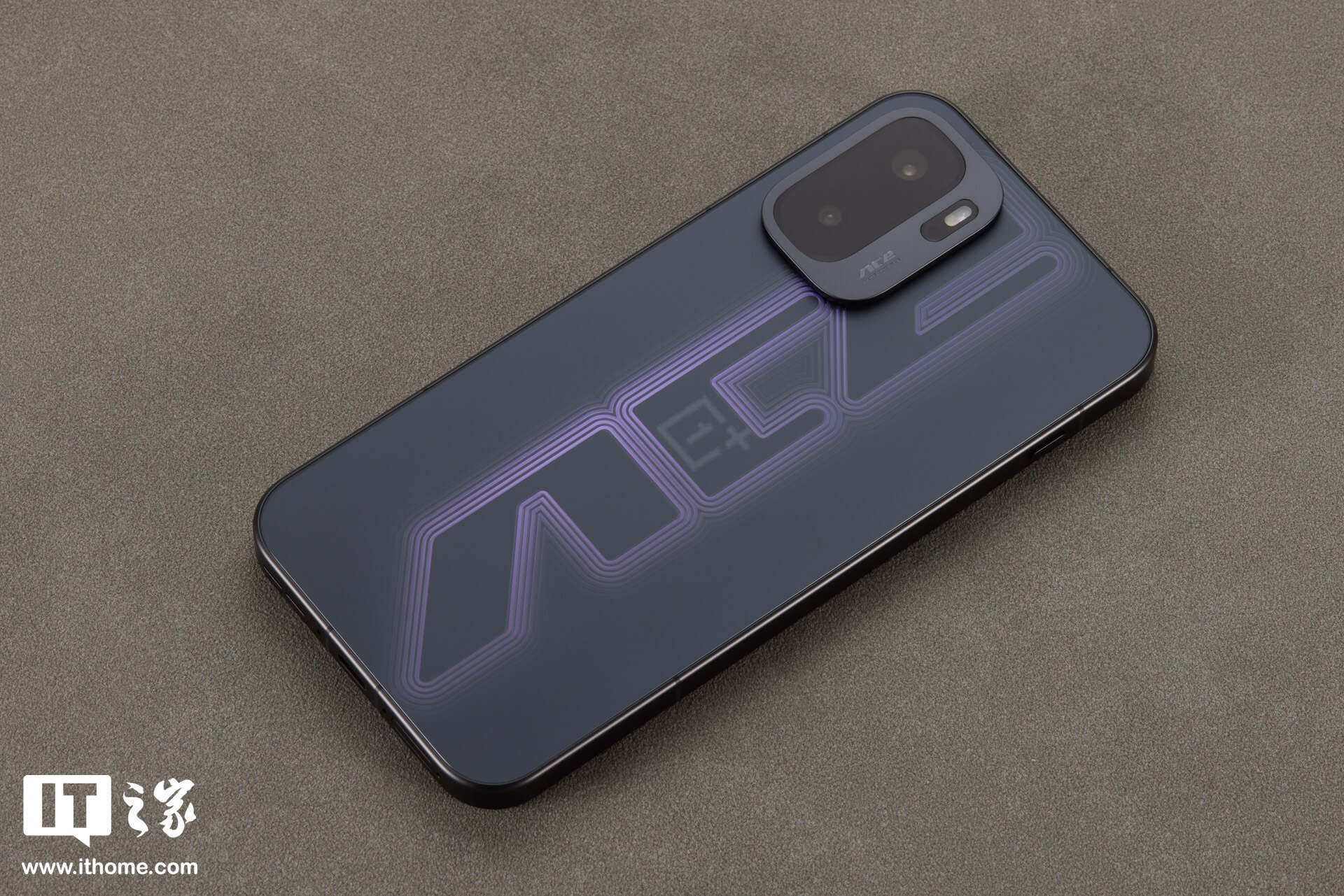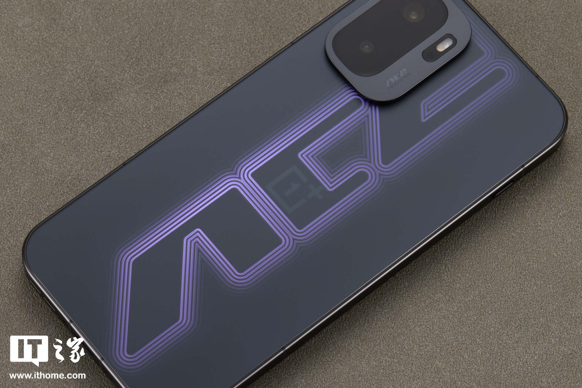 当然,这并非 RGB 氛围灯。得益于其采用的 3D 立体刻光工艺与叠层图案镀膜技术。一加通过复杂的光学纹理,在暗色基底上勾勒出了立体的光标错觉,可以说电竞感相当足了。