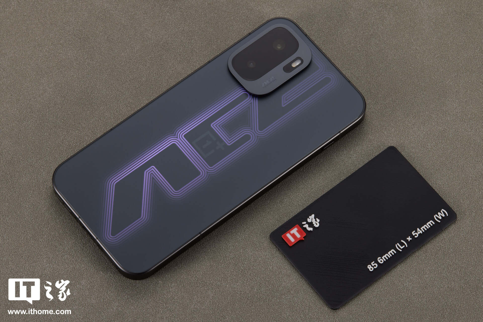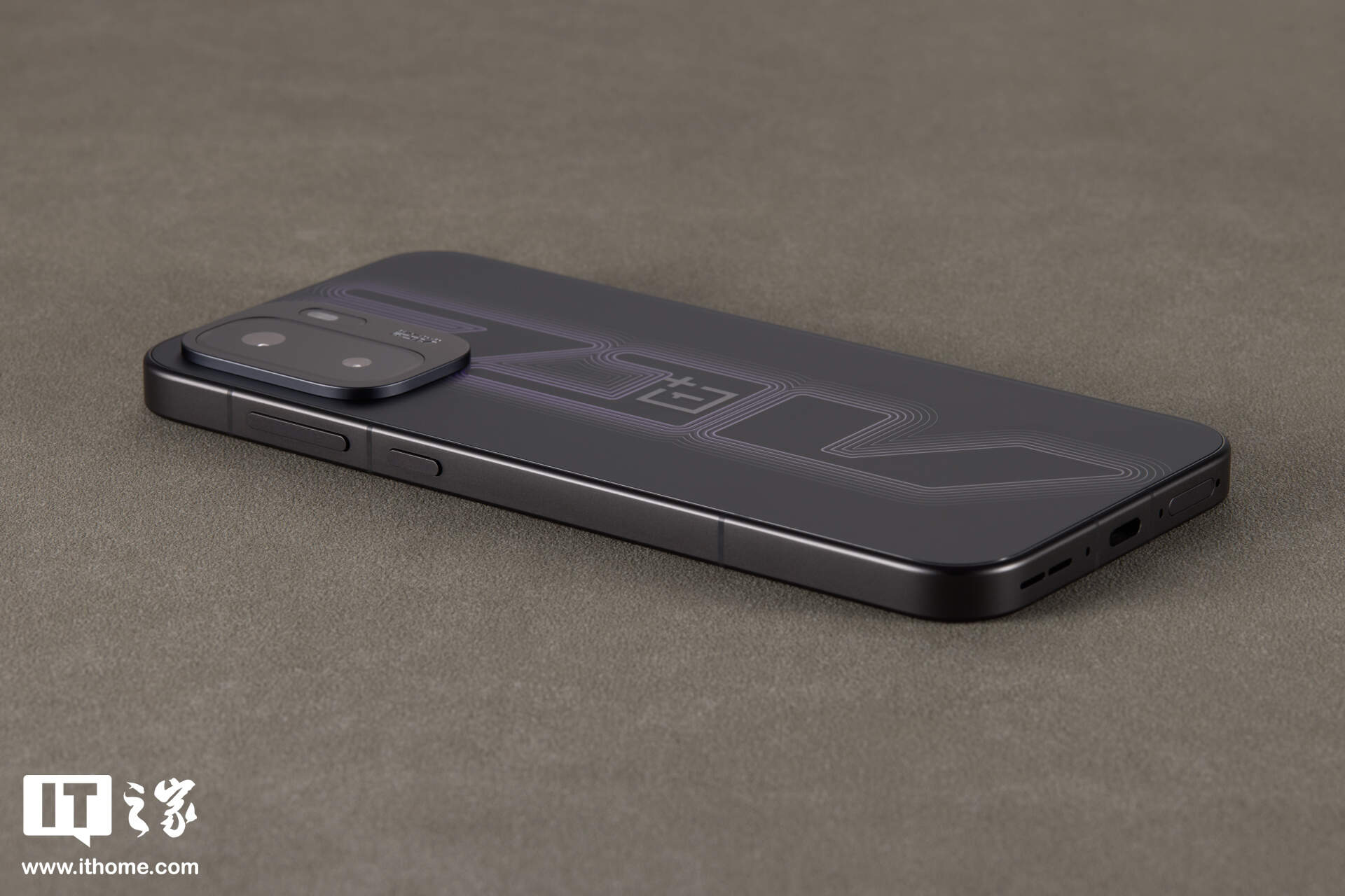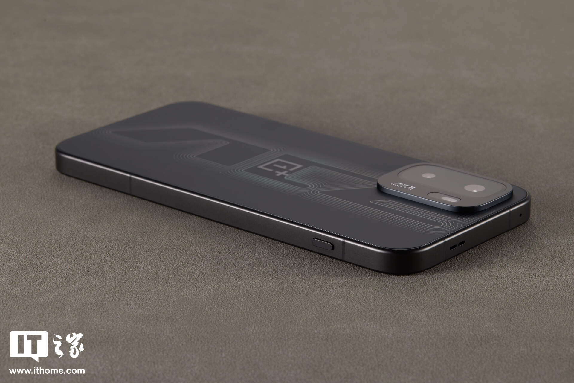 当然,这并非 RGB 氛围灯。得益于其采用的 3D 立体刻光工艺与叠层图案镀膜技术。一加通过复杂的光学纹理,在暗色基底上勾勒出了立体的光标错觉,可以说电竞感相当足了。