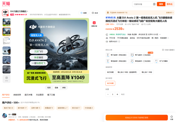 不过,大疆京东自营旗舰店在选择北京地址后,部分无人机产品暂时仍可购买,并显示4月30日送达,也就是新规实施前最后一天。