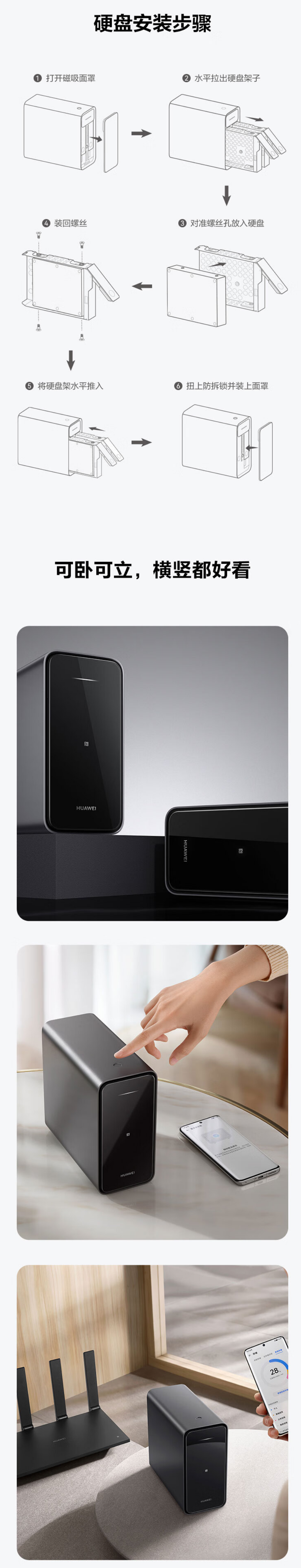 注:手机需支持 NFC,安装华为智慧生活 App 并登录个人账号后,碰一碰家庭存储 NFC 区域即可完成连接。
