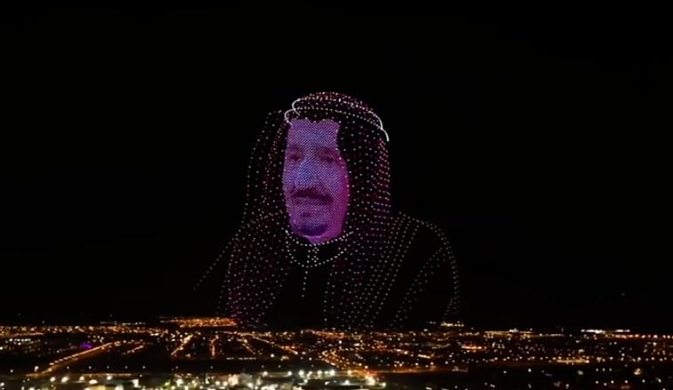 最震撼的是无人机在空中拼出的三幅巨大的3D画像,分别是沙特开国国王、现任国王跟王储,栩栩如生——论哄榜一大哥、哄领导,还是国人专业。