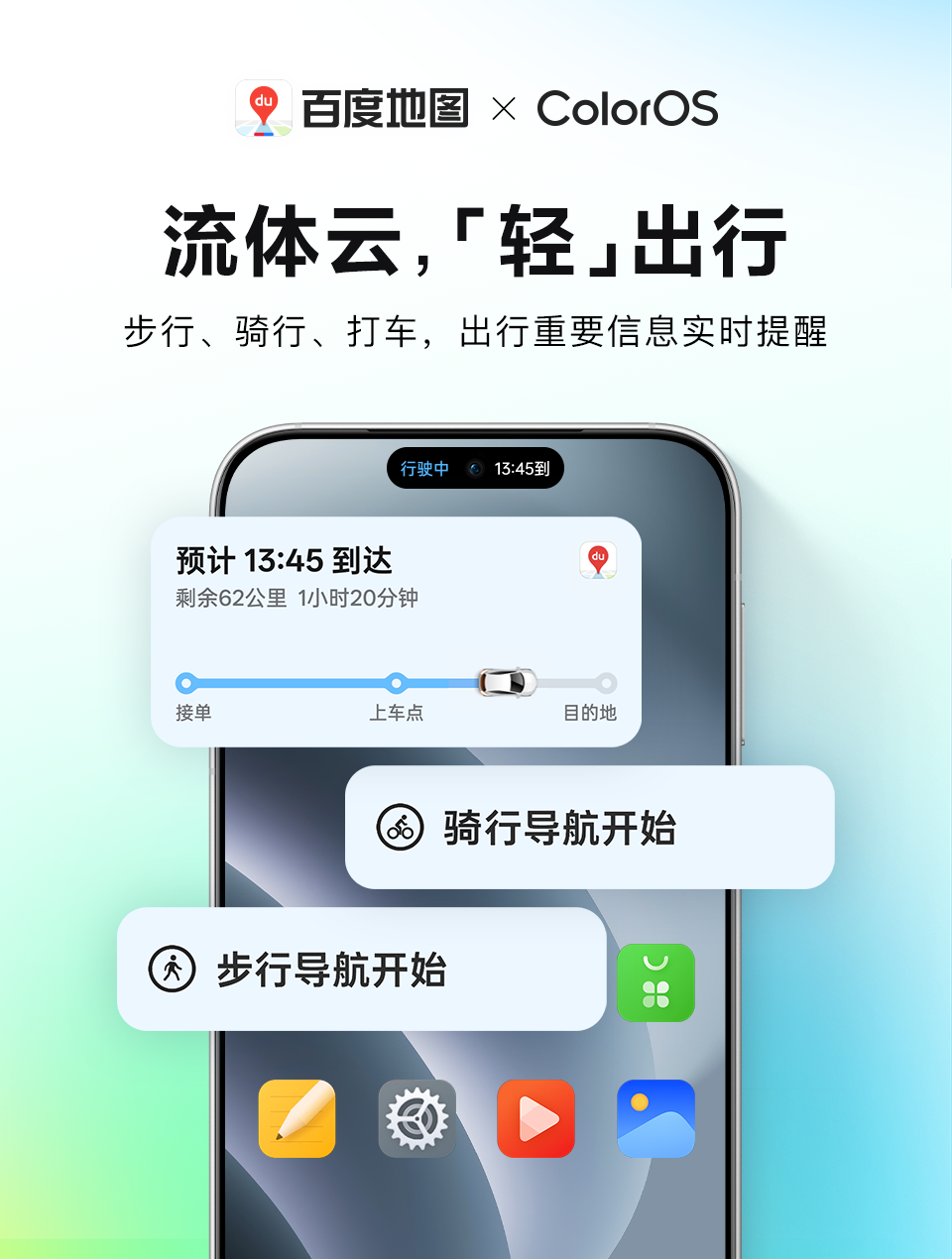 导航上“云”(流体云):支持步行、骑行、打车等出行重要信息实时提醒