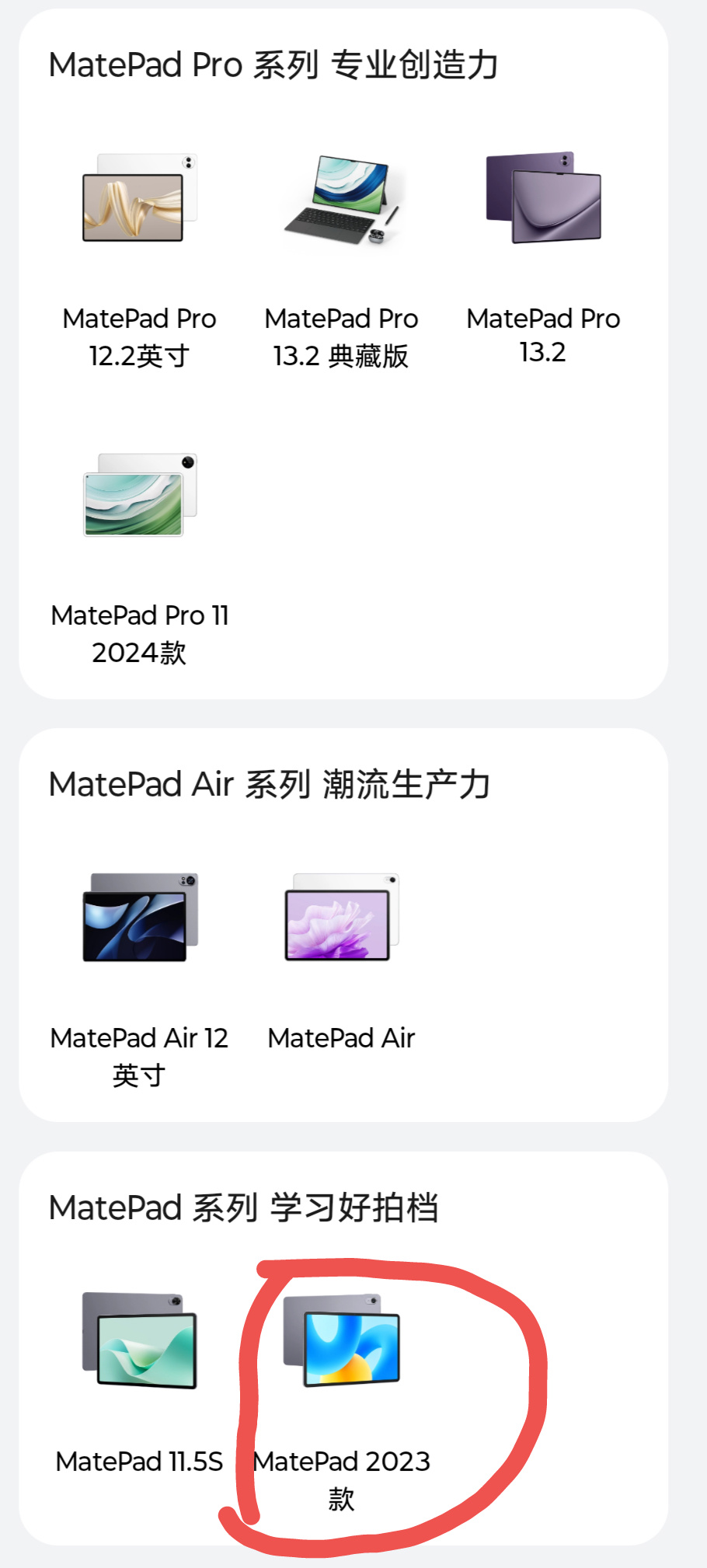 华为 MatePad 系列产品分为 Pro、Air、普通款和 SE 系列,在当前产品归类中,MatePad 11.5S 和 2023 款共同归属于 MatePad 系列(普通款)产品。由此来看,系列新品后续有望统一命名规则。