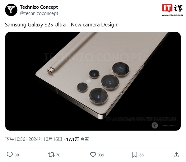 IT之家 10 月 18 日消息,消息源 TechnizoConcept 于 10 月 16 日在 X 平台发布推文,基于 @Onleaks 泄露的 CAD 渲染图以及 @i冰宇宙 曝料的相关信息,制作了一个全新的 Galaxy S25 Ultra 手机渲染图。