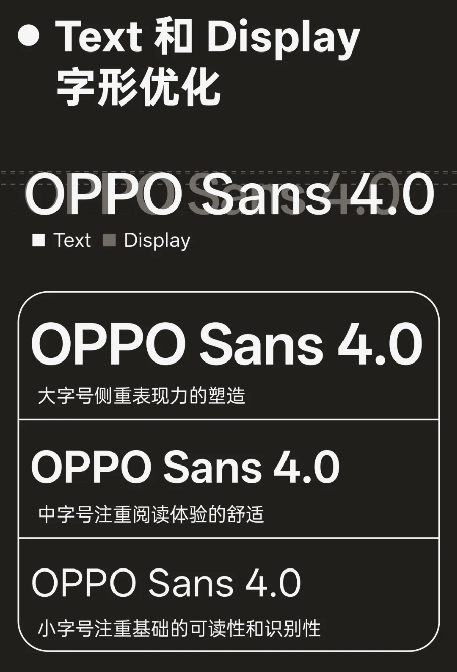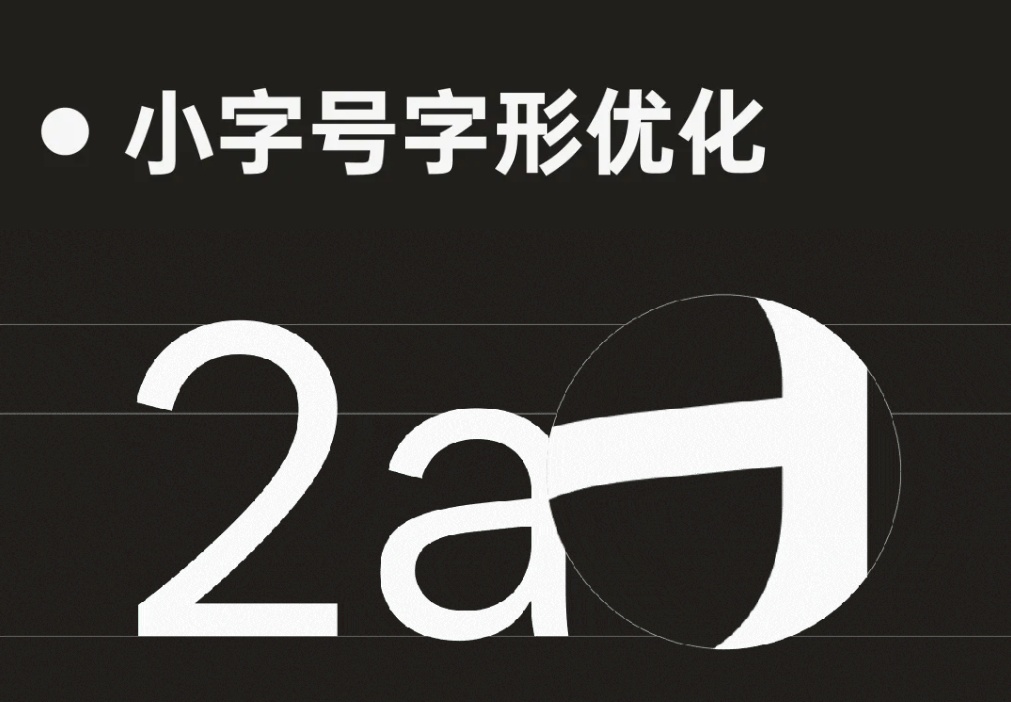 Text 和 Display 字形优化:大字号侧重表现力的塑造、中字号注重阅读体验的舒适、小字号注重基础的可读性和识别性