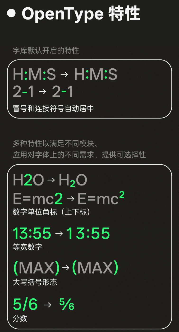 OpenType 特性:冒号和连接符号自动居中,多种特性满足不同需求